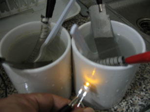 saltwater battery described in this project guide can light up a light