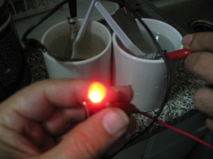 produced in this way may be used to light up a light bulb, an LED