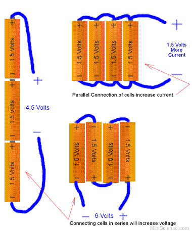 Voltage and Current before trying the Make Electricity project? In your kit you will have two different types of light. One is an incandescent light bulb with a screw base. This type of light require high current. The other is an LED (Light Emitting Diode) that requires high voltage. If you don't know about current and voltage, read this: Voltage and Current Part of the reason why electricity seems so mystifying is because you can't see it. But such things as voltage, current, etc can be explained by imagining electricity in cables as if it was water flowing in a pipe. VOLTAGE is the "pressure of electricity", and CURRENT is the flow-rate. If you are using batteries as the source of electricity, then you must know that usually larger cells provide higher current. For example alkaline batteries in sizes AA, C and D have the same voltage, but C cells can provide higher current than AA cells. D cells can provide higher current than C cells.